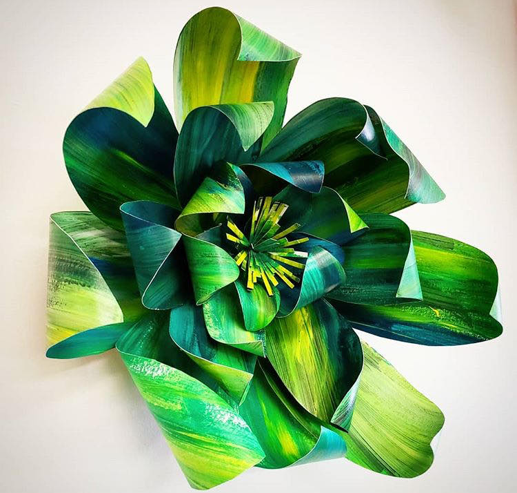AB: I would have to say the Giant Recycled Cardstock Flowers are my favorite because it was made completely by me, even the base the flower is built upon, and the hook to hang it is handcrafted and designed by me. I love watching them come together. Especially when they are all displayed together.