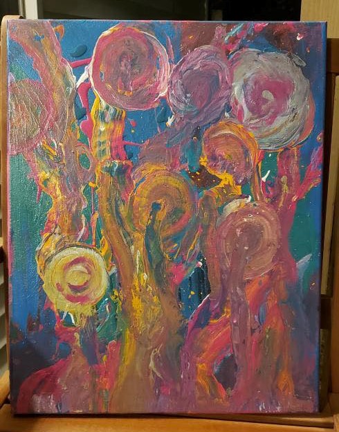 You know, the majority of artists or poets I’ve interviewed dabble in more than one art medium. I honestly find it fascinating how the brain, a complex piece of equipment in our human body can reach the optimal level of expression — regardless of tools. Ryan King, writes poetry/songs, plays music, and paints these incredible multi-hued and layered pieces. Definitely an experimenter regardless of artisanal media. I guess, the key in life to keep yourself grounded, to allow your imagination and your brain power to genuinely work beyond the 10% most humans use. Exposure to various artistic styles keep our brains from being rendered dull, boring, and monotonous pieces of meat. The capacity to allow our art in our lives for the purpose of enrichment – it may not generate physical wealth but the richness in your plasma will genuinely prosper — not only with experimentation but with being open to a new art process. Ryan lingers on his art in a fashion that makes individuals curious. As one, will not know what he is going to do next. For more information on Ryan, please follow on Instagram @vayouking.