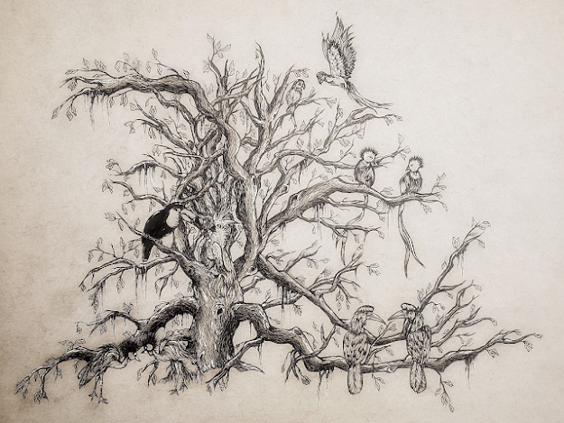 Above you will see the illustration that CCIQ Press\’ Resident Artist Valisa Bernardino designed for the Verity cover. I wanted the outside of Verity to reflect her insides and what better way to do it than to ask Val sketch a tree with various birds in discussion with each other. To me Val\’s illustration looks like engrossed dialogue — which is the exact reaction I want Verity to radiate.