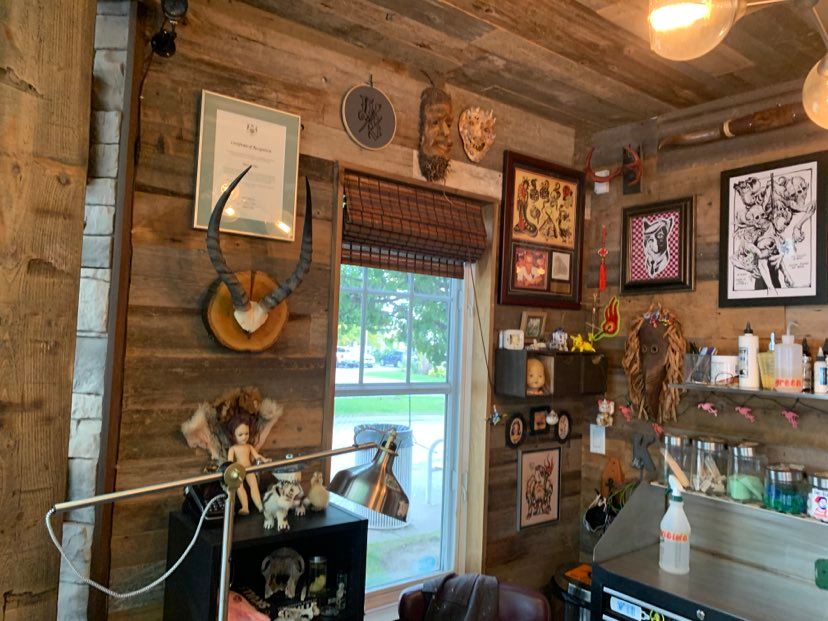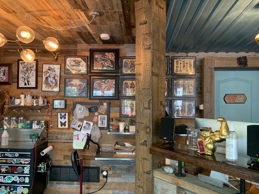 The minute I walked into Next Of Skin, Tyler was there to greet me, the space is so wickedly vibelicious truly, the décor was beyond eclectic a genuinely fun space to explore, especially the “f@cking rats” look below you’ll see just what I am talking about. In the tattoo area also the MOST calming space to be tattooed, I looked up and saw a forest, it was so beautiful, the green put me at ease in seconds; I’d not been tattooed up in decades and everything I had thought was wrong with regard to healing was COMPLETELY wrong and the pain, not as bad as I had thought.
