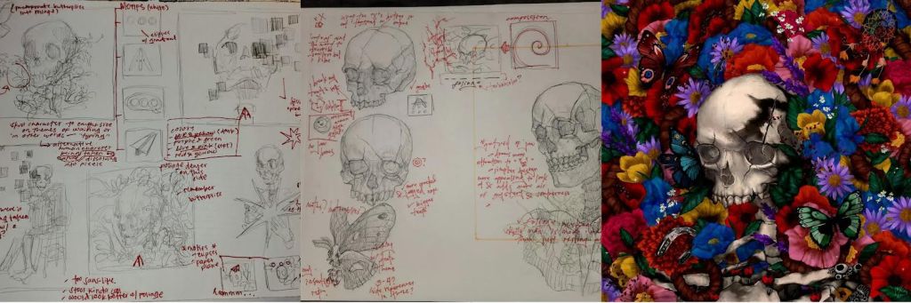 SG: Always look back at your very first sketchbooks. With the rise of all these social platforms out there, it feels almost as if there’s is just a saturation of talent EVERYWHERE. And sure, success is still pretty one in a million, but it’s hard to feel like you’ll have any chance at making it when there are fourteen year old prodigies popping up left and right. The point is, there will always be somebody better than you, no matter what creative field you’re in, and that’s okay. We’re all constantly learning, and it isn’t about where you’re at compared to some other artist, but rather where you are compared to who you were one year ago. That ugly inner critic will tell you that today’s magnum opus is worth nothing, but looking back and finding beauty in the journey to that, will say otherwise.